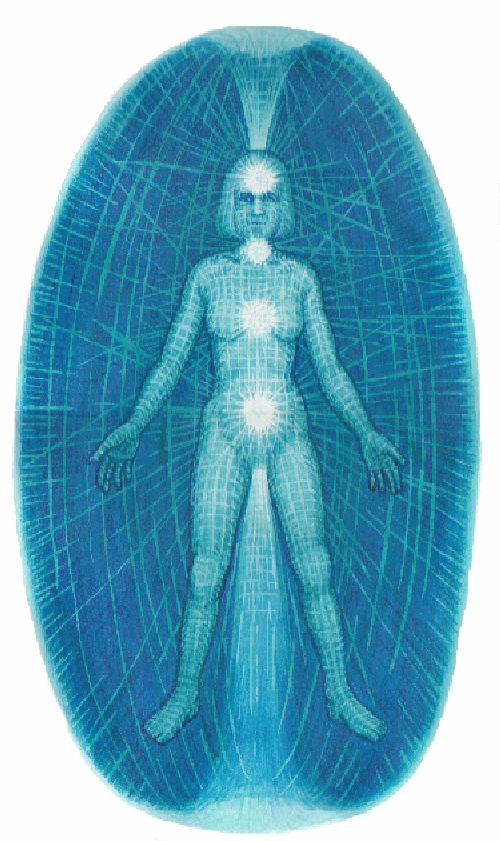 The etheric body is less of a body and more of a template. It shows the energy flow of the physical body surrounding the physical body by about 2 inches and is a light blue in colour. The physical body is a result of the etheric body. Change the etheric body and the physical body must change.